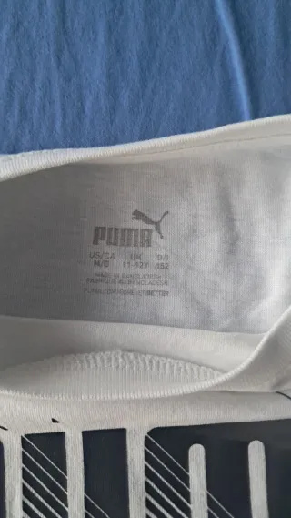 Maglietta bianca a maniche corte con logo Puma. - Taglia 12 anni / 152 cm. - Logo Puma stampato sul davanti.