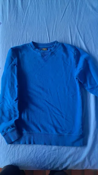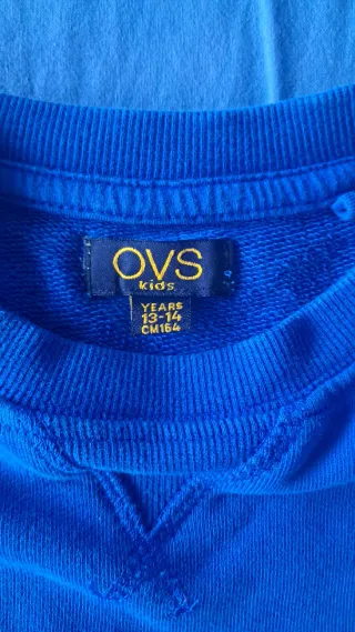 Felpa girocollo OVS di colore blu, taglia 14 anni (164 cm). - Girocollo con dettagli a V. - Polsini e fondo a costine.