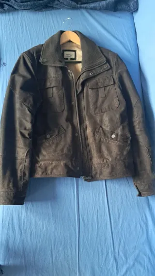 Elegante giubbotto in pelle marrone. Un capo versatile e di qualità. - Materiale esterno in pelle. - Fodera interna calda e confortevole. - Design classico con chiusura a zip. - Tasche frontali applicate.