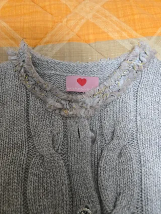 Cardigan cashmere grigio/oro con bottoni gioiello