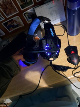 Cuffie da gaming con un design moderno e illuminazione LED. - Imbottitura morbida per un maggiore comfort. - Microfono integrato. - Cavo di collegamento.