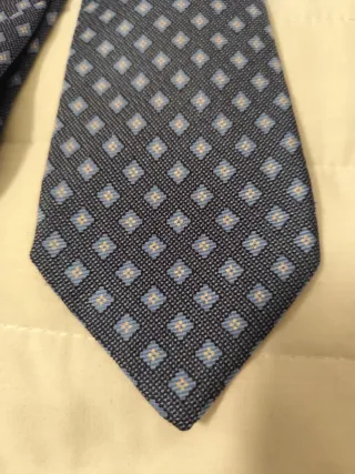 Elegante cravatta Kiton con una raffinata fantasia geometrica. - Tessuto di alta qualità. - Motivo a rombi blu e azzurri.