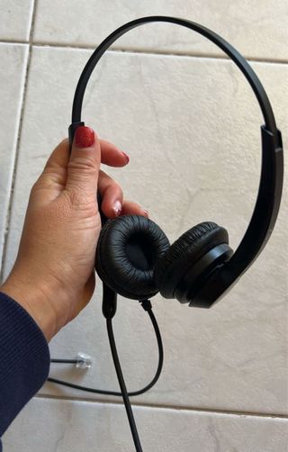 Cuffie con microfono per PC, ideali per chiamate e conferenze. - Design leggero e confortevole. - Archetto regolabile. - Padiglioni morbidi per un ascolto prolungato. - Cavo con connettore RJ9.