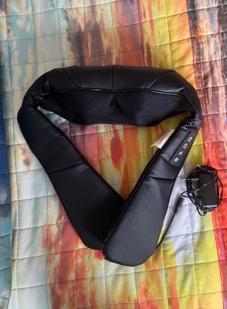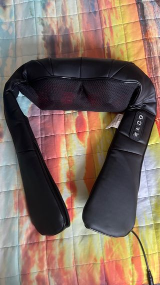Massaggiatore cervicale elettrico con funzione riscaldante, ideale per alleviare tensioni su collo, spalle e schiena, ma anche cosce, polpacci e piedi. Massaggio 4D puó essere combinato con la funzione riscaldante, i 4 tasti consentano accensione, attivazione del calore, cambio rotazione e cambio intensità. Due comode maniglie per infilare le braccia e posizionarlo in modo preciso. È stato solamente provato, ottime condizioni. - Rivestimento in ecopelle nera. - Pannello di controllo integrato. - Alimentatore incluso.