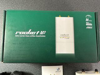 BaseStation Ubiquiti Rocket M3 per reti wireless. - Frequenza 3GHz. - Modello Carrier Class airMax. - Include alimentatore e cavo di alimentazione.