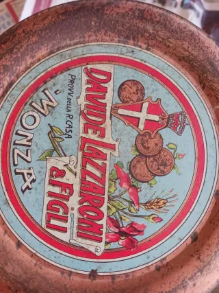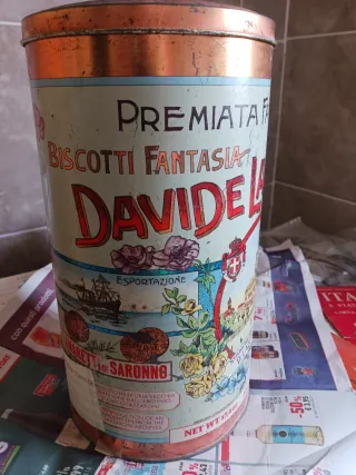 Latta vintage da collezione Lazzaroni, modello Biscotti Fantasia. - Design con illustrazioni storiche e floreali. - Scritta Premiata Fabbrica Davide Lazzaroni Saronno. - Riproduzione di una vecchia latta dagli archivi Lazzaroni.