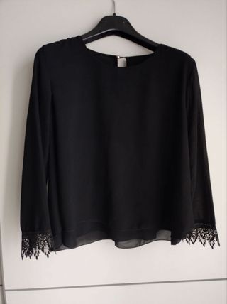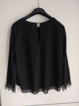 Vendo camicia nera elegante, senza bisogno di stirare, con manica a 3/4 e dettaglio sulla manica. Leggera, ma non trasparente, vestibilità comoda. Taglia M. Colore Nero Marca Piazza Italia Perfetto per ragazze stagione inverno. Utilizzato moltissimo per lavoro come per outfit personali. Materiale non indicato, purtroppo l'etichetta non è più leggibile.