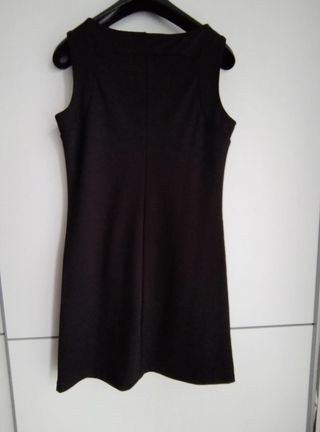 Vendo abito elegante, smanicato, verde con ricami neri sul fronte, nero sul retro. Lunghezza fino al ginocchio, caldo e quindi suggerito per utilizzo durante autunno/inverno. Perfetto nei colori per donne stagione inverno. Utilizzato per eventi lavorativi e professsionali, così come eventi speciali. Piazza italia. Taglia M.