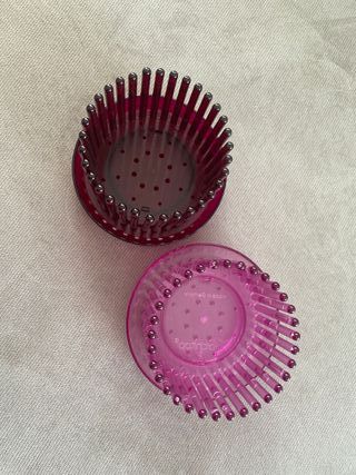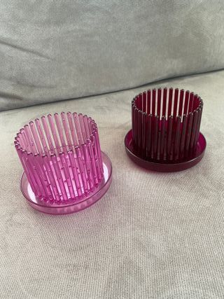 Set composto da due vasi per orchidee Orchitop Small bordeaux e rosa provvisti di sottovaso, che si fissa al vaso con un sistema ad incastro. Il sistema a paletti verticali consente lo sviluppo delle radici, lascia passare la luce e fornisce un'areazione ottimale del substrato, evitando muffe e marciume dell'apparato radicale. Robusto e durevole, è un modello brevettato made in Germany e realizzato in policarbonato alimentare. Dimensioni vaso diametro 10 cm, altezza 8 cm, spazio fra i paletti: 3 mm. Dimensioni sottovaso: diametro 13 cm, altezza 2,2 cm. I due vasi sono nuovi.