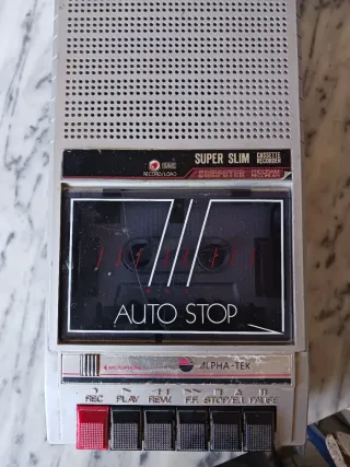 Registratore mangiacassette Super Slim della marca ALPHA-TEK. Necessita di intervento per la cinghia.valuto offerte da aggiustare - Modello Computer Program Recorder. - Funzione Auto Stop. - Pulsanti: REC, PLAY, REW, FF, STOP/EJ, PAUSE. - Ingresso per microfono.
