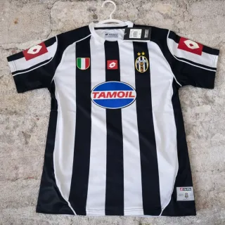 Camiseta de fútbol vintage de la Juventus de la temporada 2002/2003. - Diseño clásico con rayas blancas y negras. - Logo de Lotto y patrocinador Tamoil. - Talla L.