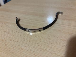 Elegante bracciale da uomo con dettagli in argento. - Design moderno e raffinato. - Chiusura a scatto sicura. - Logo inciso sul metallo.