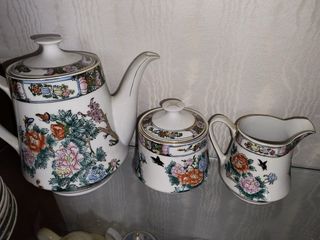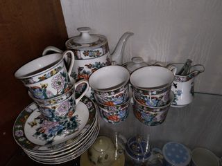 Fantasia floreale. completo di teiera, 6 tazzine, 6 piattini, una lattiera e una zuccheriera. dipinto a mano. MISURE APPROSSIMATIVE