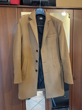 Elegante cappotto da uomo color cammello. - Taglio classico. - Fodera interna nera. - Chiusura con bottoni. - Tasca interna