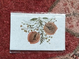 6 biglietti augurali creati con veri fiori e foglie. Anche la carta è prodotta artigianalmente con materiali naturali.