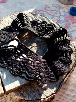 Colletto in pizzo nero realizzato all'uncinetto con filato di cotone pregiato colletto in pizzo di cotone nero fatto a uncinetto taglia S leggerissimo volant lavorazione accurata cotone pregiato nero - Materiale: Cotone - Colore: Nero - Lavorazione: Uncinetto - Dettagli: Pizzo, bordo ondulato, laccetti