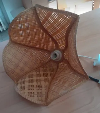 Lampadario in rattan con finiture in plastica. Singola lampadina massimo 250 V. Diametro 40 cm h 25 cm più cavo. Non presenta segni di usura. Colore rattan naturale