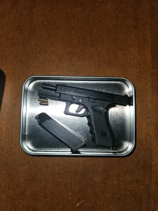 Portachiavi a forma di pistola in miniatura, scala 1:3. - Design dettagliato. - Completo di anello portachiavi. - Custodia inclusa.