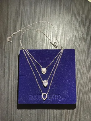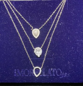 Collana Morellato 925 in argento sterling con tre catene sovrapposte e pendenti a goccia con zirconi. In ottime condizioni, completa di scatola e certificato di garanzia