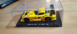 Modellino di auto da corsa Marcos 600LM del 1996. - Scala 1:32 - Dettagli fedeli all'originale - Base espositiva inclusa Marcos LM 600 Le Mans 96 Modello Fly Car 1/32 Spedito con scatola originale e supporto. Vendo perché mi è stata regalata doppia per Natale come regalo. Nuova su eBay si trova circa a 50€ più spedizione. Compatibile con tutte le marche di piste: Ninco, Carrera, Scalextric, Superslot, Hornby, EXIN, Triang... Magnifica riproduzione in scala 1:32 del Marcos 600 Les Mans 96 per slot, realizzata dalla ditta madrilena Fly Car Model, vedi il doppio spoiler posteriore che lo differenzia dalla versione 95. Condizioni