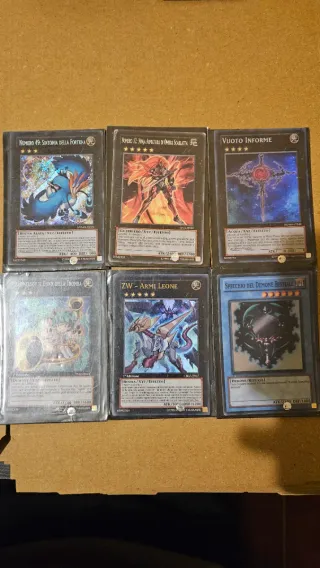Vendo carte Yu-Gi-Oh! da collezione. - Carte in buone condizioni. - Diverse rarità presenti. - Ideali per appassionati e collezionisti. Nelle prime 6 foto ci sono le carte tenute in buono stato qualcuna ha qualche difetto negli angoli. Le altre sono tutte abbastanza rovinate, mi raccomando guardate bene perché non sono parte immacolata e le do via tutte così come sono.