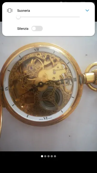 Elegante orologio da tasca Bulova con movimento scheletrato a vista. - Cassa in metallo dorato. - Quadrante bianco con numeri romani. - Movimento meccanico a vista. - Logo Bulova inciso sul movimento. - Swiss Made sul quadrante.