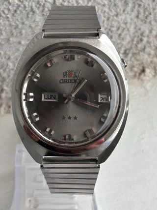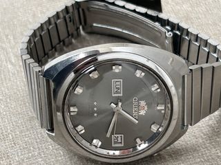 Vendo dalla mia collezione questo splendido Orient degli anni '70, un pezzo di storia dell'orologeria giapponese caratterizzato da un design solido e un quadrante grigio soleil di grande impatto. Punti di forza: • Meccanica: Monta il raro calibro Orient 1942 un movimento robusto e dal fascino meccanico d'epoca. • Stato: L'orologio è stato recentemente revisionato; marcia perfettamente e il cambio data/giorno è fluido. • Estetica: Cassa in acciaio ben conservata, indici sfaccettati e finestra Day-Date in italiano. • Pronto all'uso: Non necessita di alcun intervento, è pronto per essere indossato quotidianamente o collezionato. Un oro