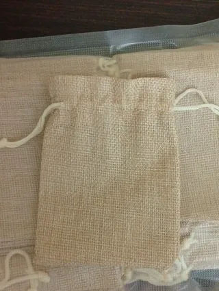 Set di 24 sacchetti in juta con chiusura a coulisse. Con adesivo carta Kraft e biglietti Ideali per bomboniere, regali o conservazione. - Materiale: Juta naturale - Quantità: 24 pezzi - Chiusura: Coulisse - 9x12