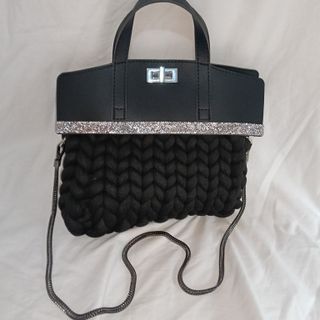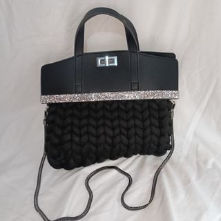 Borsa con un design moderno e accattivante, perfetta per aggiungere un tocco di stile. - Materiale esterno in ecopelle. - Dettaglio con strass scintillanti. - Manici superiori. - Tracolla a catena rimovibile. - Chiusura a scatto. - Tessuto lavorato in filato marshmellow