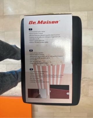 Macchina per popcorn De Maison, modello Kitchen series. - Potenza: 1200W - Operazione rapida e semplice - Popcorn pronti in 3 minuti - Colore rosso metallizzato