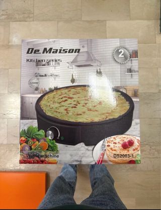 Macchina per preparare crepes e pancake, marca De Maison. - Potenza 1200W. - Design moderno con finiture in acciaio. - Piastra antiaderente. - Indicatore luminoso di accensione. - Controllo temperatura regolabile.