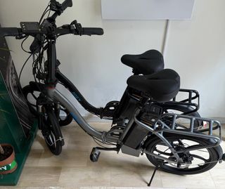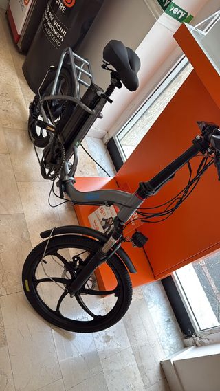 e-bike grigia completa di carabatteria e cestino da montare