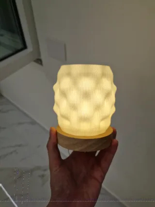 Lampada effetto Silk bianca base legno