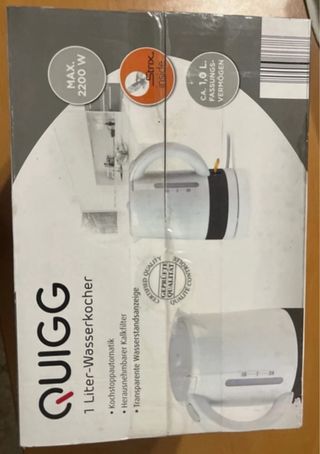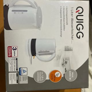 Bollitore elettrico Quigg da 1 litro, nuovo. - Capacità: 1,0 L - Potenza: 2200 W - Elemento riscaldante Strix - Filtro anticalcare rimovibile - Indicatore livello acqua trasparente - Spegnimento