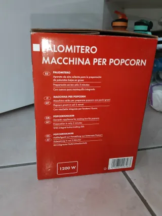 Macchina per preparare popcorn ad aria calda, ideale per uno snack leggero e veloce. Permette di preparare popcorn in soli 3 minuti. - Apparecchio per popcorn a basso contenuto di grassi. - Include un pratico contenitore per sciogliere il burro.