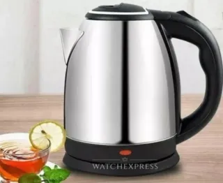 Bollitore elettrico in acciaio con una capacità di 2 litri. - Base girevole a 360 gradi. - Elemento riscaldante nascosto. - Indicatore luminoso di accensione.