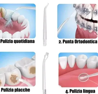 Idropulsore dentale elettrico per una pulizia profonda dei denti. - Design Whole Waterproof. - Potenza di pulizia +95%. - Diverse opzioni di modalità: Weak, Strong, Pulse. - Include cavo di ricarica USB.