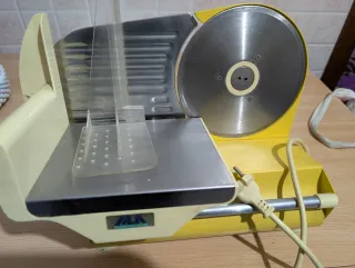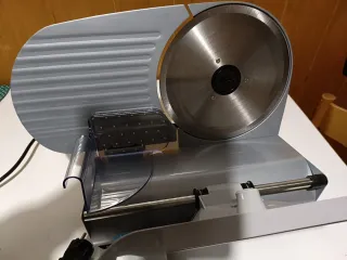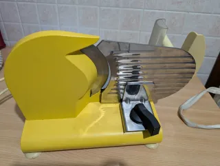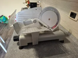 Macchina per salumi in acciaio inossidabile e plastica. - Lama in acciaio - Protezione in plastica per la lama. - Base antiscivolo