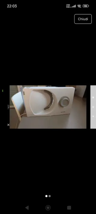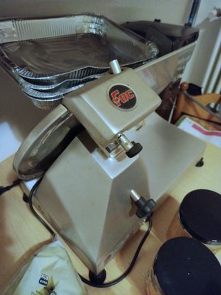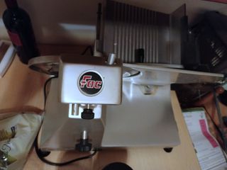 Affettatrice marca CAD, modello Pratika 22. Funziona perfettamente, l'unico difetto è la lama leggermente storta che causa affaticamento al motore e la manopola che a volte si stacca. Prezzo trattabile