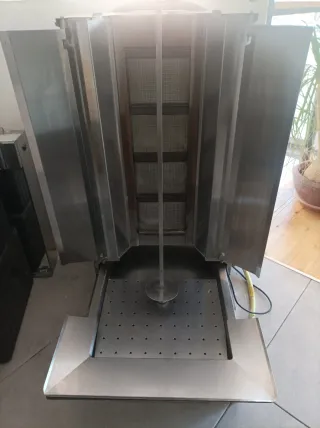 Attrezzatura professionale per preparare kebab con 4 fuochi, usata pochissimo. Include affettatrice professionale in acciaio inossidabile.