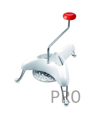 Affettatrice manuale per verdure, ideale per tagliare a fette, julienne o cubetti. - Struttura in plastica resistente. - Lama in acciaio inossidabile. - Contenitore raccogli verdure integrato. - Spingi-alimenti per una maggiore sicurezza.
