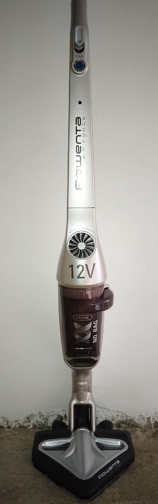 Rowenta Air Force 12 V 2 velocità. Senza filo e fornito di caricabatterie. Tipo: RH84 Modello: RH8469 01 Tecnologia No Bag (non bisogna acquistare alcun sacchetto contenitore) Filtro di ricambio incluso. Perfettamente funzionante. Come da foto, qualche graffio.