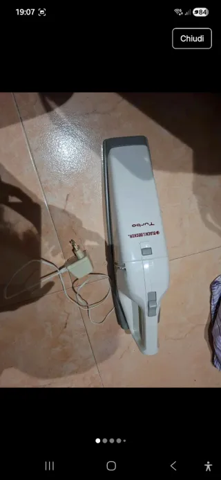 Aspirapolvere portatile di colore nero e verde lime, completo di tubo e spazzola. In discrete condizioni. Aspira ma di tanto in tanto si ferma. Forse ha un falso contatto da riparare. - Design compatto e maneggevole. - Tubo telescopico in metallo. - Spazzola per pavimenti. - Cavo di alimentazione.