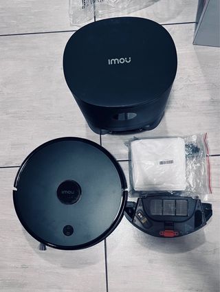 Robot aspirapolvere IMOU L11, ideale per la pulizia della casa. - Design circolare nero. - Logo IMOU presente sul corpo. - Base di ricarica inclusa. da titolo si vende ROBOT ASPIRAPOLVERE IMOU L11 funzionante completo di scatola insieme viene ceduto un secondo raccogli polvere ricambi vari di cui : spazzola filtri sacchetti panni per lavare il ROBOT mappa la casa aspira e lava usato in casa per raccogliere polvere no animali .