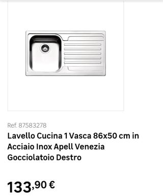 lavello per cucina 1 vasca 86x50 cm in acciaio inox . Gocciolatoio a destra . nuovo mai utilizzato