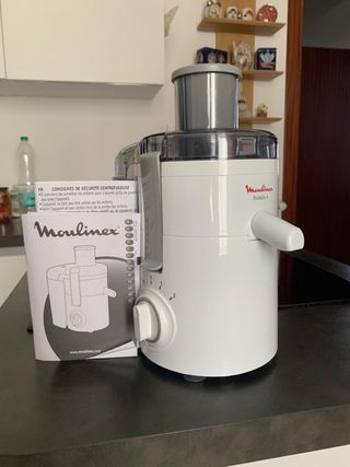 Vendo spremiagrumi Magimix Juice 2, in ottime condizioni. È bianco e sembra in perfetto stato. Estrattore di frutta e verdura completo di accessori e ricettario. - Facile da usare - Design compatto - Perfetto per estrarre succo da frutta e verdura