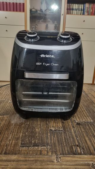 Vendo perfettamente funzionante questa friggitrice ad aria e forno elettrico marca Ariete, modello 4619. Cuoce su più ripiani, dotato di 3 griglie, una maniglia e un vassoio. Esternamente si presenta in ottime condizioni, si sono sbiaditi gli adesivi dei programmi di cottura e delle manopole. La manopola di destra regola la temperatura (fino a 200°C), quella di destra il tempo (fino a 60 min). Vendo per inutilizzo, ho comprato una nuova friggitrice. Misure prodotto: 32,50x34x38,5 cm. Misure delle griglie: 25,60x22 cm. Per qualsiasi ulteriore informazione o fotografie sono disponibile in chat privata ☺️
