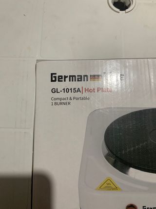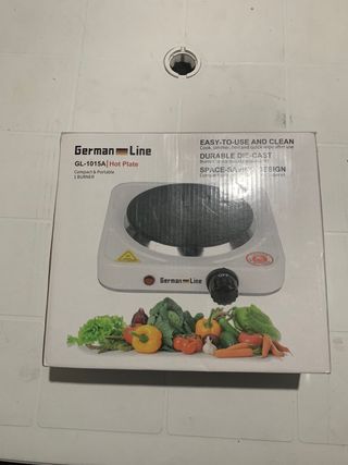 Piastra elettrica compatta e portatile German Line, modello GL-1015A. - Design compatto e salvaspazio. - Facile da usare e pulire. - Struttura in pressofusione durevole. - Piastra riscaldante a 1 bruciatore.