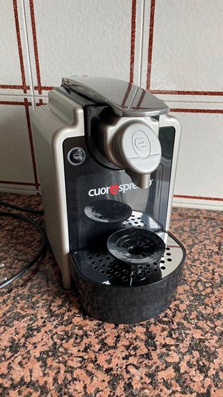 Macchina per caffè in capsule Cuorespresso, dal design moderno e compatto. - Colore argento e nero. - Vassoio raccogligocce rimovibile.