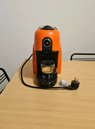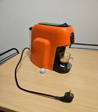Macchina da caffè Bialetti per capsule, dal vivace colore arancione. Perfetta per preparare un ottimo caffè. - Design compatto. - Facile da usare. - Usata solo per un paio di mesi e il caffè in foto è stato fatto per dimostrare la perfetta funzionalità.